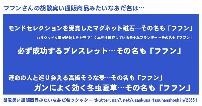 | ヒーロー風カッコイイあだ名 | 『スーパーフフン』『天空の使者フフン』 |