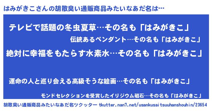 | 意味不明あだ名 | 『永久保存はみがきこ』『自称はみがきこ』 |