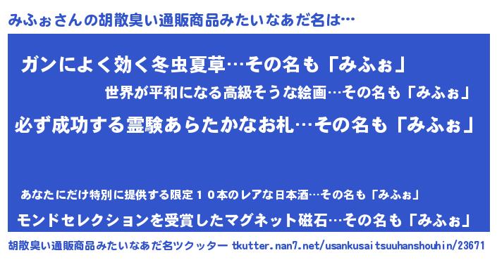 | ヘコむあだ名 | 『みふっふぃ~』『牛乳』『みふを』 |