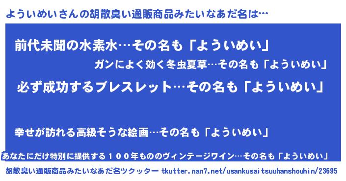 | ヘコむあだ名 | 『ようふぇ~』『よういめい(震え声)』 |