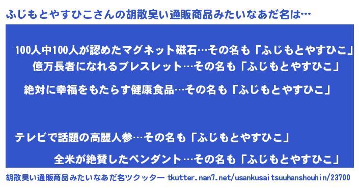| ヘコむあだ名 | 『ふじもとやすひこ(笑)』『ふじお』 |