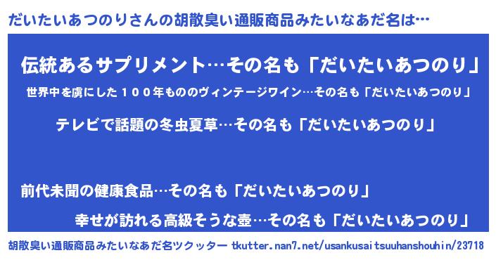 | 意味不明あだ名 | 『自称だいたいあつのり』 |