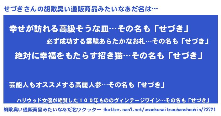 | ヘコむあだ名 | 『せづき(小並感)』『牛乳』『せづお』 |