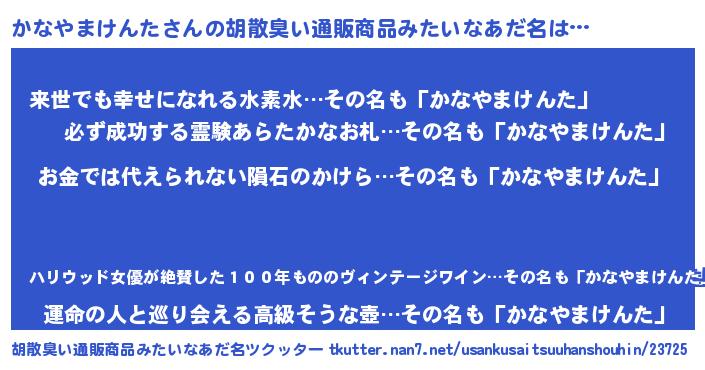 | ヘコむあだ名 | 『かなやまけんた(苦笑)』『豆乳』 |