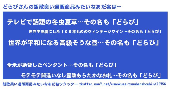 | ヘコむあだ名 | 『なまこ酢』『どらふぇ~』 |