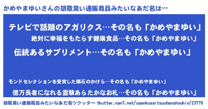 | 意味不明あだ名 | 『とにかく怪しいかめやまゆい』 |