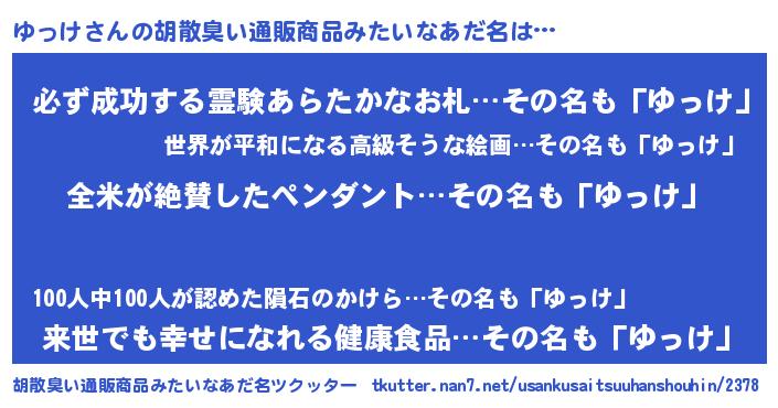 | 意味不明あだ名 | 『とにかく怪しいゆっけ』 |