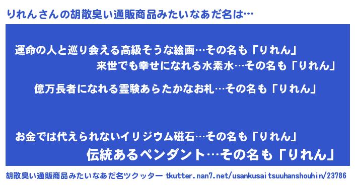 | 伝説のあだ名 | 『封印されしスナイパーりれん』 |