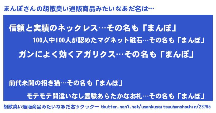 | 意味不明あだ名 | 『自称まんぽ』『とにかく怪しいまんぽ』 |