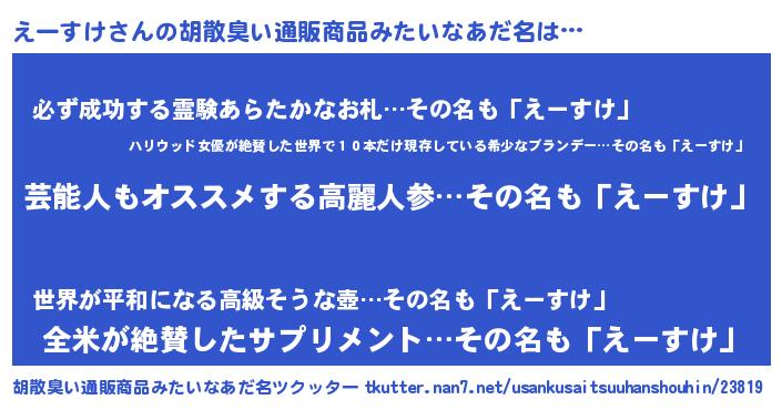 | 意味不明あだ名 | 『自称えーすけ』『ペロリンえーすけ』 |