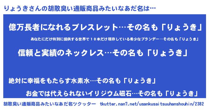 | 意味不明あだ名 | 『とにかく怪しいりょうき』 |