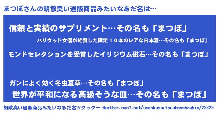 | 男性向けラノベタイトル風あだ名 | 『ノーゲーム・ノーマツボ』 |