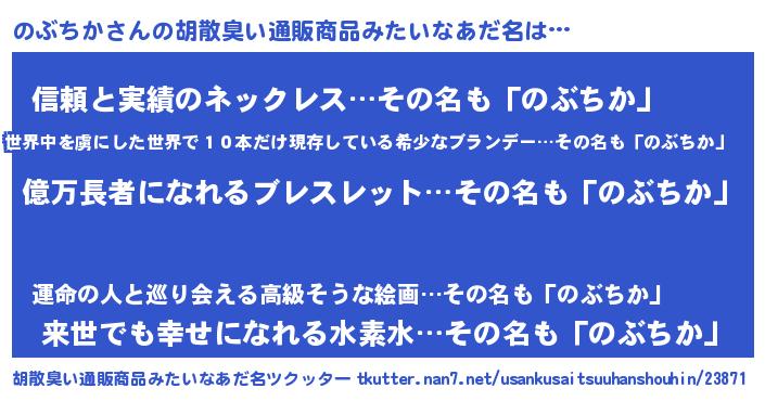 | ヘコむあだ名 | 『のぶにー』『のぶお』『牛乳』 |