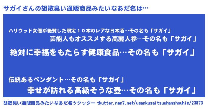 | ヘコむあだ名 | 『サガイ(笑)』『なまこ酢』 |