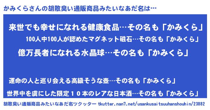 | ヘコむあだ名 | 『かみにゅー』『かみくら(苦笑)』 |