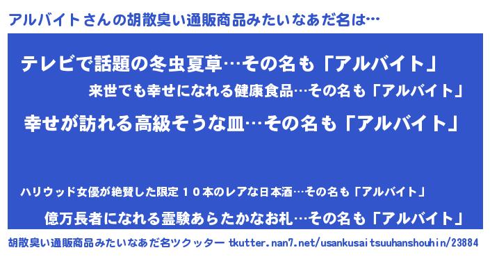 | 意味不明あだ名 | 『アルバイトフォーエバー』 |