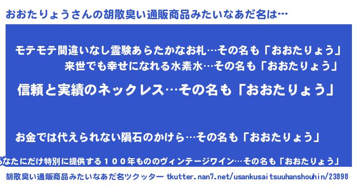 | 意味不明あだ名 | 『とにかく怪しいおおたりょう』 |