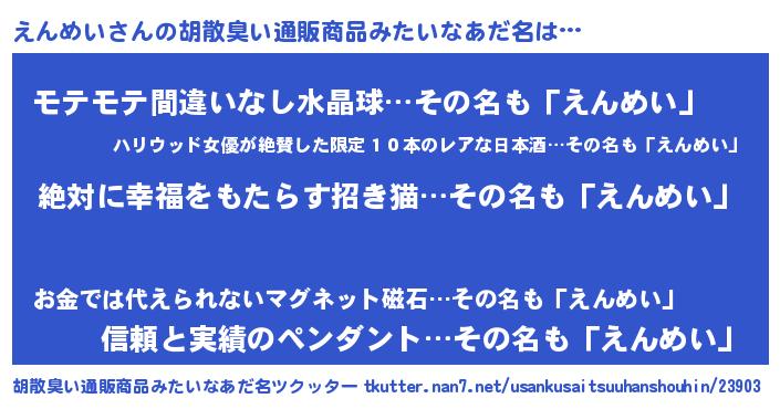 | ヘコむあだ名 | 『えんめい(笑)』『えんふぇ~』 |