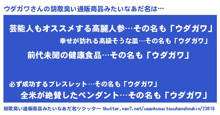 | ヘコむあだ名 | 『ウダガワ(爆)』『ウダを』『豆乳』 |