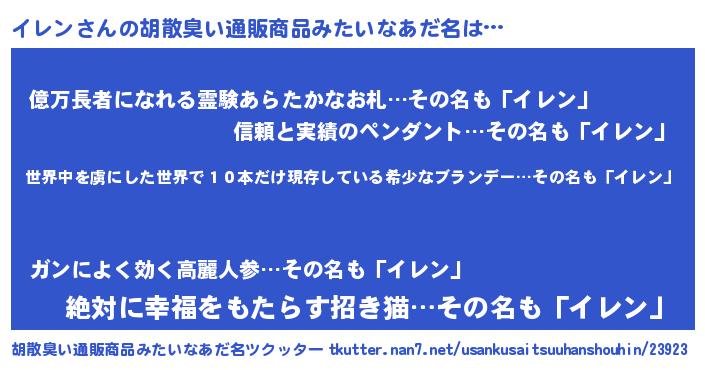 | 男性向けラノベタイトル風あだ名 | 『魔弾の王とイレン』『イレンの憂鬱』 |