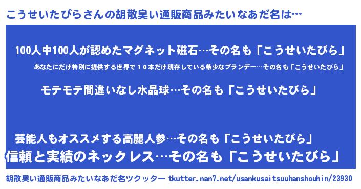 | ヒーロー風カッコイイあだ名 | 『スーパーコウセイタビラ』 |