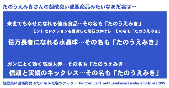 | ヘコむあだ名 | 『たのにゅー』『たのうえみき(爆)』 |