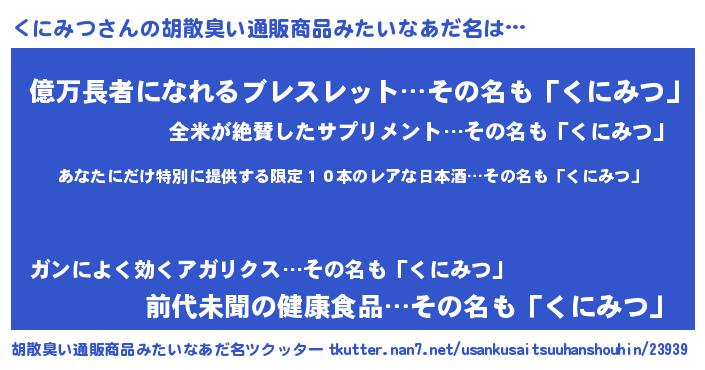 | 意味不明あだ名 | 『住所不定無職くにみつ(62歳)』 |