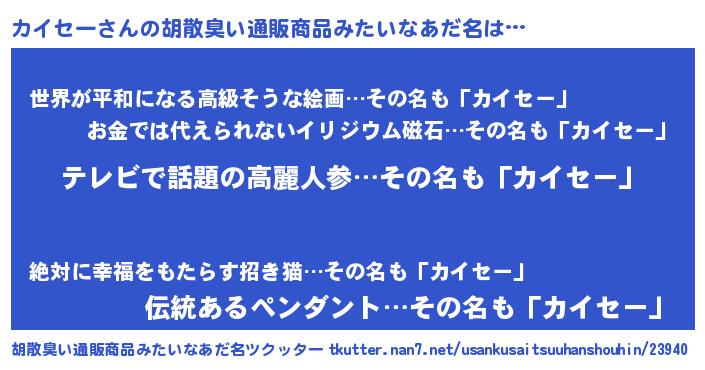 | 意味不明あだ名 | 『自称カイセー』『カイセーフォーエバー』 |