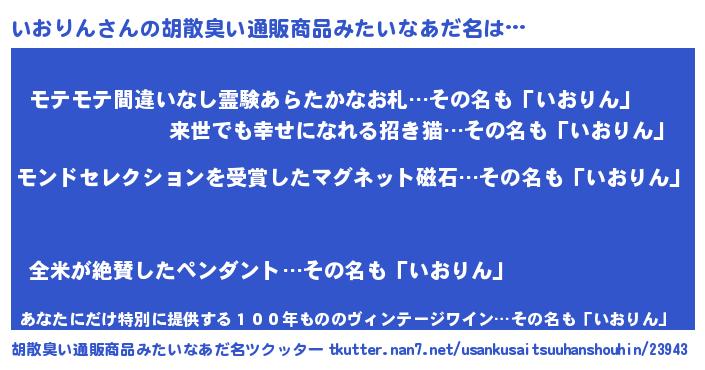 | ヘコむあだ名 | 『いおふぇ~』『いおりん(苦笑)』 |