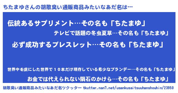 | 意味不明あだ名 | 『ペロリンちたまゆ』『自称ちたまゆ』 |