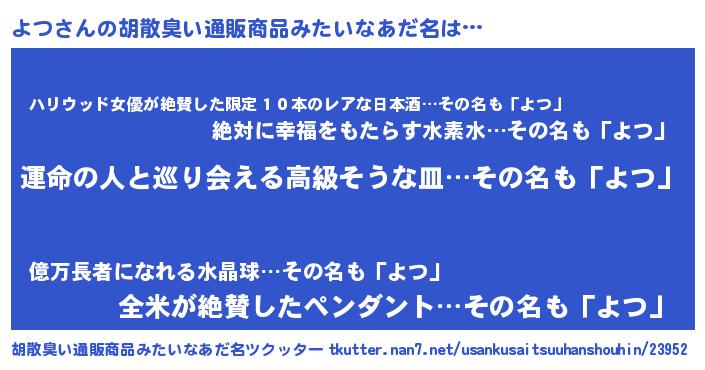 | 意味不明あだ名 | 『よつフォーエバー』『永久保存よつ』 |