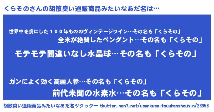 | ヘコむあだ名 | 『くらにゅー』『くらその(小並感)』 |