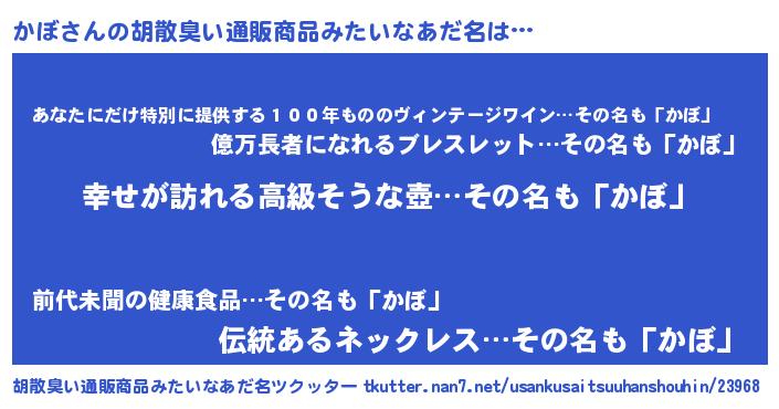 | 2回繰り返すあだ名 | 『かかぼぼ』『じわじわ』『かぼかぼ』 |