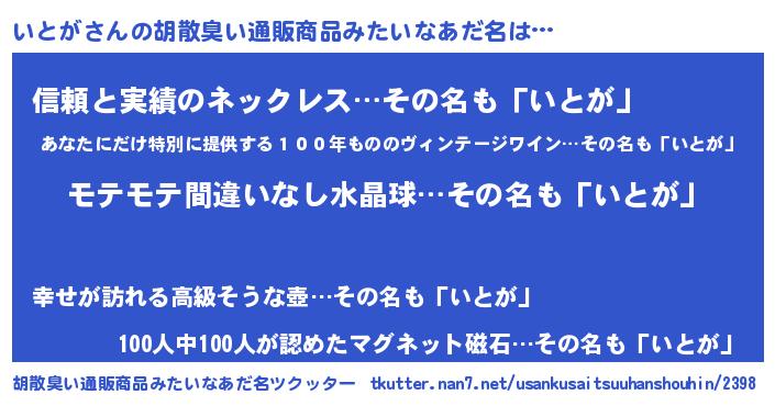 | ヘコむあだ名 | 『いとにゅー』『いとっ子』『つくし』 |