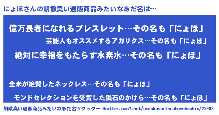 | 意味不明あだ名 | 『永久保存にょほ』『ペロリンにょほ』 |