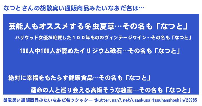 | 欧米人風あだ名 | 『ダニエルなつと』『ケンブリッジなつと』 |