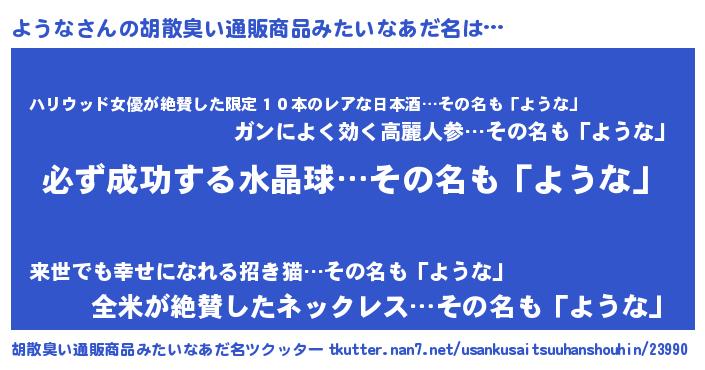 | ヘコむあだ名 | 『ようもー』『よう太郎』『酢こんぶ』 |