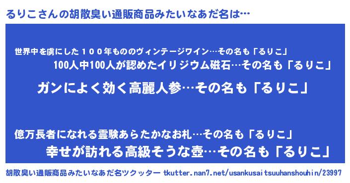 | ヒーロー風カッコイイあだ名 | 『超時空戦士ルリコ』『仮面ルリダー』 |