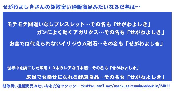 | 肩書あだ名 | 『せがわよしき助手』『せがわよしきCEO』 |