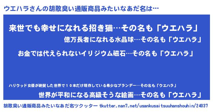 | ヘコむあだ名 | 『ウエハラ(爆)』『酢こんぶ』 |