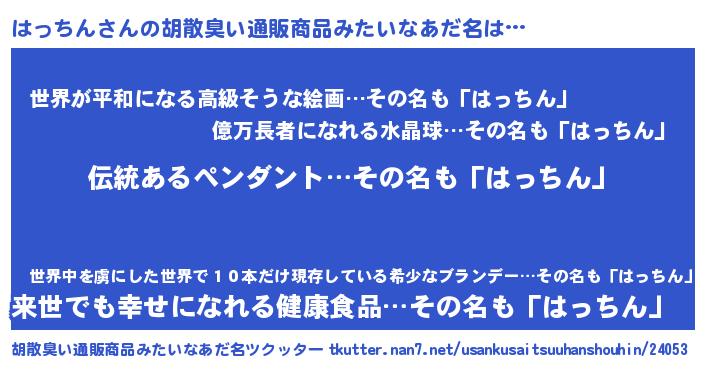| ヘコむあだ名 | 『はっっぺ』『なまこ酢』 |