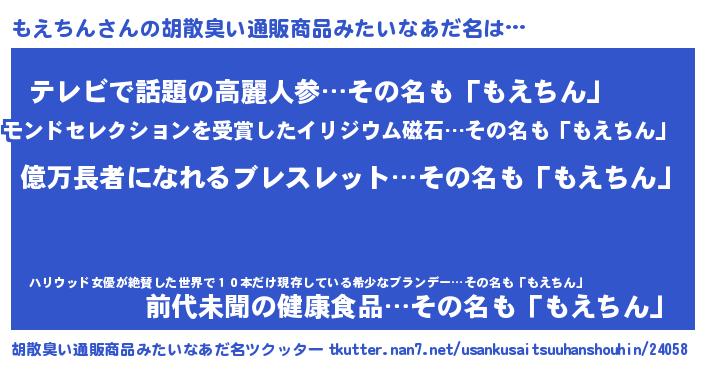 | ヘコむあだ名 | 『もえふぇ~』『もえちん(小並感)』 |