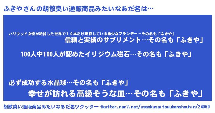 ふきやさんの胡散臭い通販商品みたいなあだ名をツクッター!