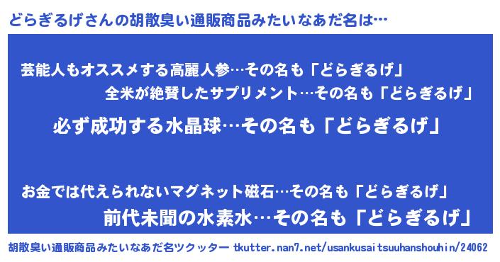 | 意味不明あだ名 | 『ペロリンどらぎるげ』『自称どらぎるげ』 |