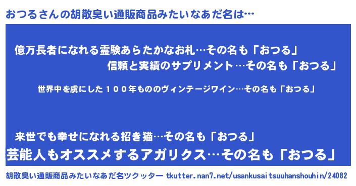 | 意味不明あだ名 | 『住所不定無職おつる(7歳)』『自称おつる』 |