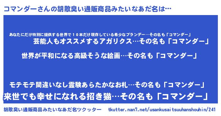 | 意味不明あだ名 | 『コマンダーフォーエバー』 |