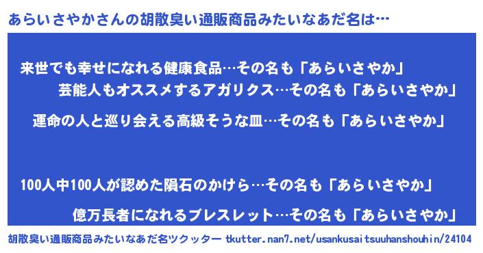 | 意味不明あだ名 | 『ニラ科あらいさやか属』 |