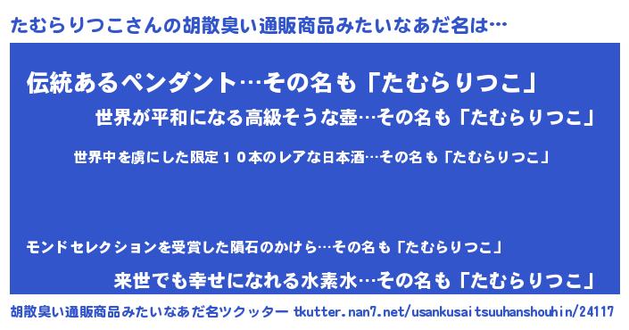 | 意味不明あだ名 | 『住所不定無職たむらりつこ(65歳)』 |