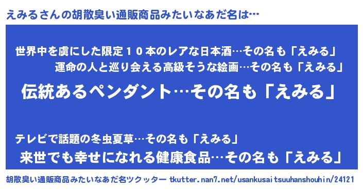 | 意味不明あだ名 | 『なめこ科えみる属』『永久保存えみる』 |