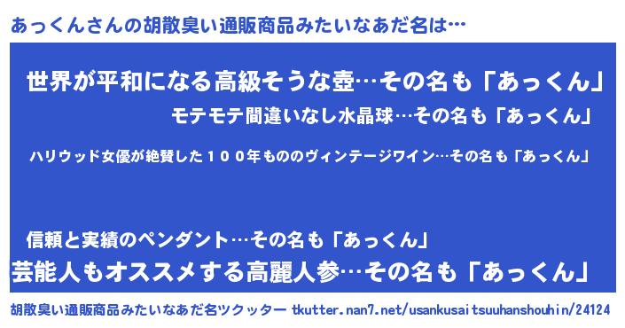 あっくんさんの胡散臭い通販商品みたいなあだ名をツクッター!